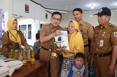 "Kami Tim Penanggulangan Inflasi Daerah (TPID) bersama Dishanpan dan PT Jateng Agro Berdikari, hari ini melaksanakan pembagian pangan bersubsidi yaitu beras dan minyak goreng untuk menjaga kestabilan harga barang pokok di akhir tahun ini," ucap Pj Bupati Brebes Ir Djoko Gunawan MT usai menyerahkan bantuan.